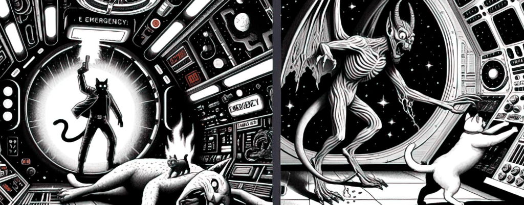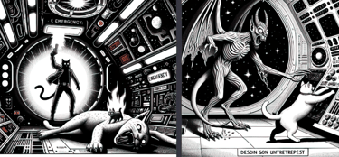 This article is part of the "Making Of" series about "Urlan, Cosmic Cat" and features some of the weirdest, funniest and/or more interesting unused images generated in the rollercoaster process of creating this incredible AI-illustrated graphic novel.