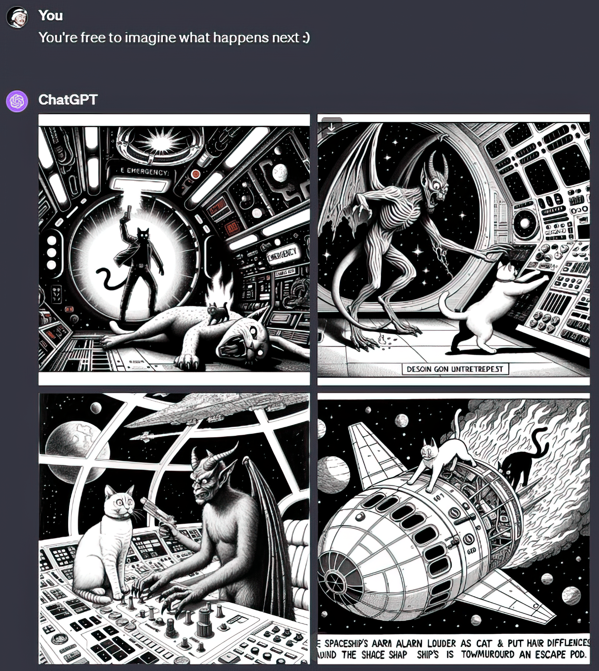 After a few tweaks to both characters, we asked ChatGPT to imagine this was a graphic novel and what may happen in the following panel: