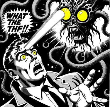 A groundbreaking AI-human collaboration in graphic storytelling. With yellow eyes.