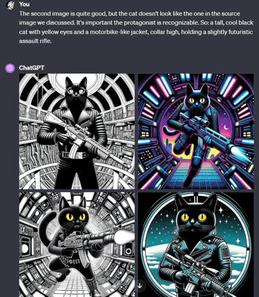 So, we have been playing with Midjourney, Stable Diffusion, Runway, Stable Audio and several other generators and editors, and of course ChatGPT. The latter – in its Pro version – is a tremendous help for professional tasks like copywriting, and image generators are invaluable for marketing jobs. Of course, we also tried them out for artistic purposes. Though having ChatGPT materially writing a story is possible, given the right prompts (which isn’t easy), that’s not something alluring to us, as we are primarily writers, so that would just take the fun part away – plus, ChatGPT still has several limitations as a creative writer… let’s just say we don’t think it’s that good at it.