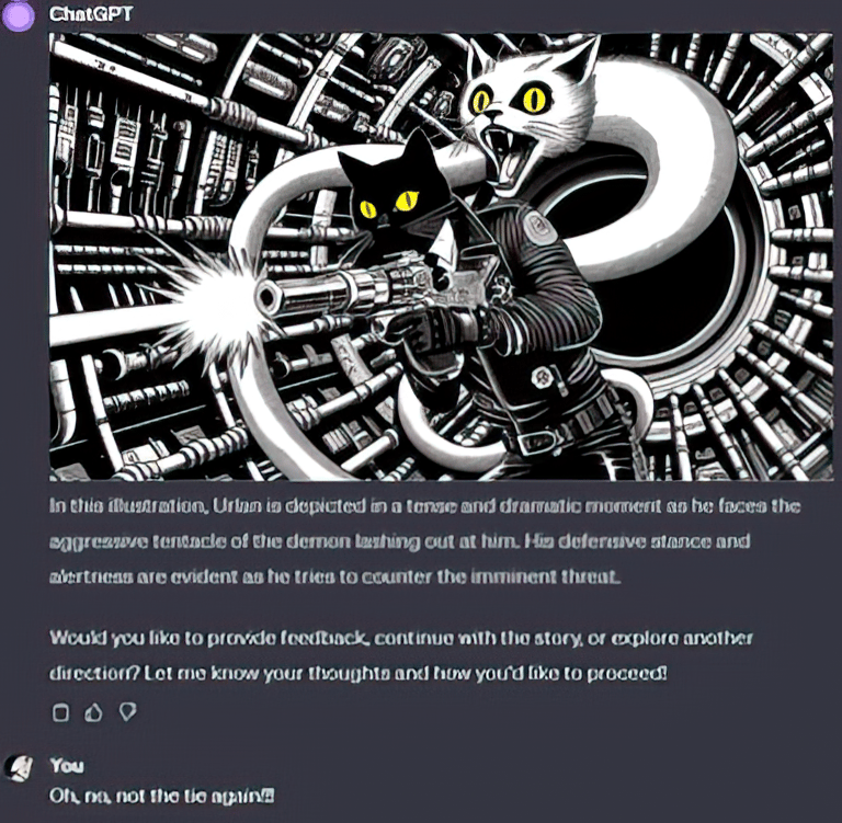 This article is part of the "Making Of" series about "Urlan, Cosmic Cat" and features some of the weirdest, funniest and/or more interesting unused images generated in the rollercoaster process of creating this incredible AI-illustrated graphic novel.
