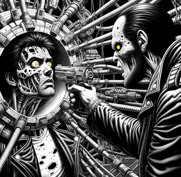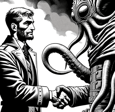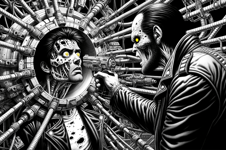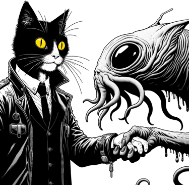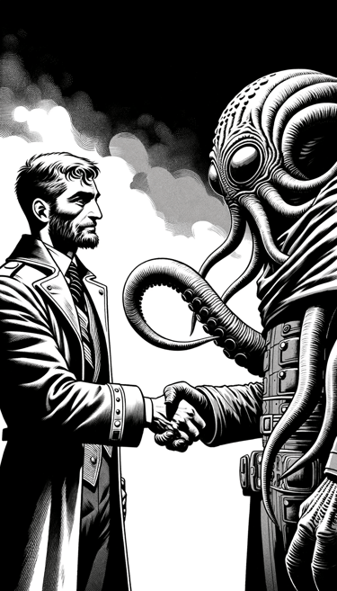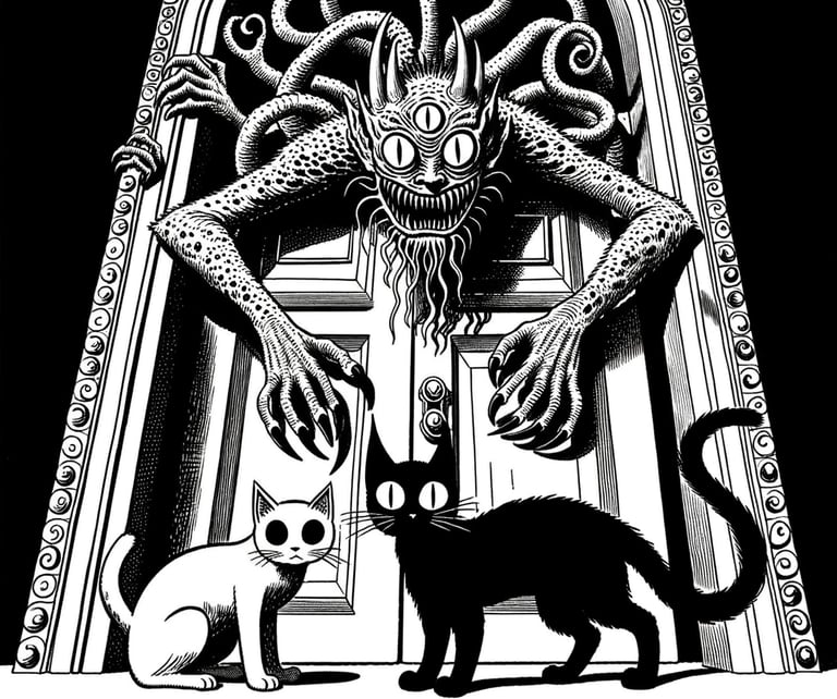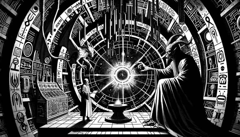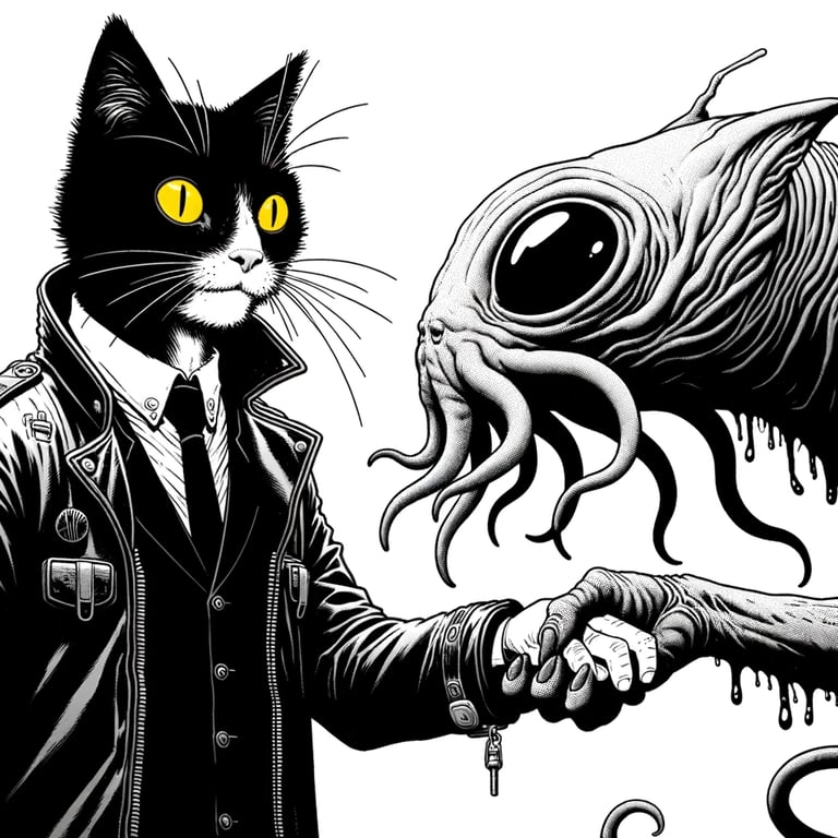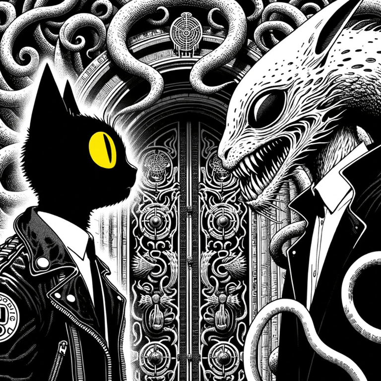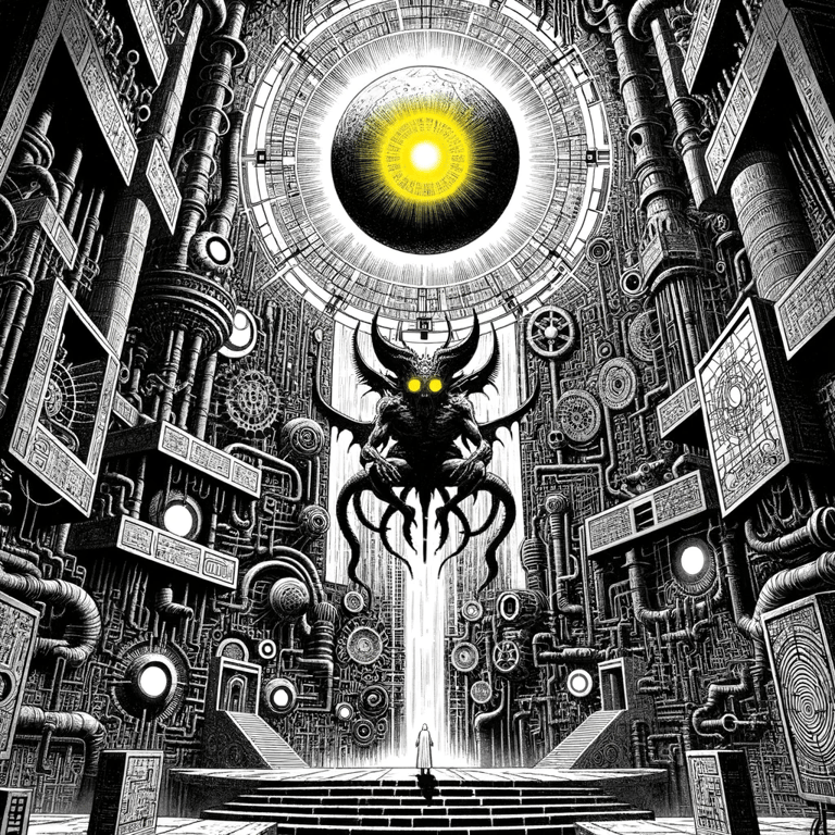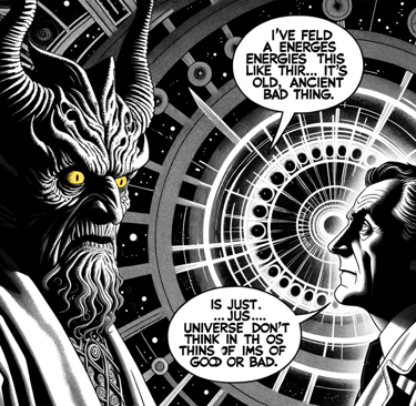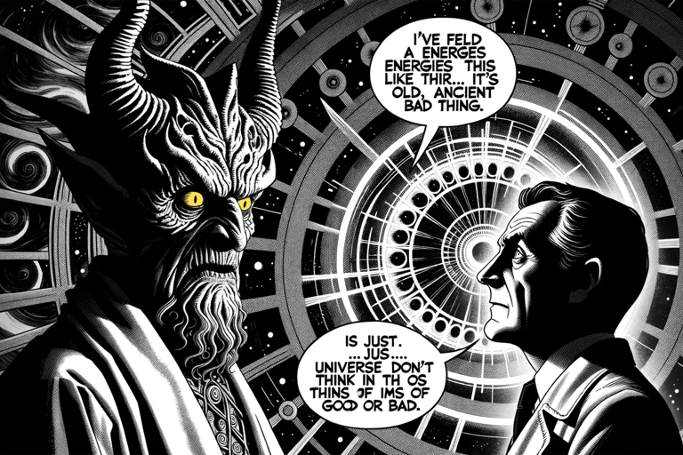 The storytelling potential in that scene was immense, a true test of our collaborative might. The visuals had to match the narrative's crescendo, depicting the grand scale of cosmic forces at play, personal drama, and the monstrous transformation of T.D. It was a scene that demanded everything from the AI's generative powers—a symphony of black and white.