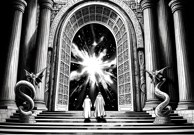 This ship, with its myriad doors leading to different realities, dimensions, or states of being, becomes not just a setting but a character in its own right. It is a vessel of infinite possibilities, reflecting the boundless nature of the universe and the spiritual odyssey of its inhabitants. The idea that it has been on an almost century-long divine quest adds layers of history and mystery, inviting readers to ponder the nature of existence and exploration.